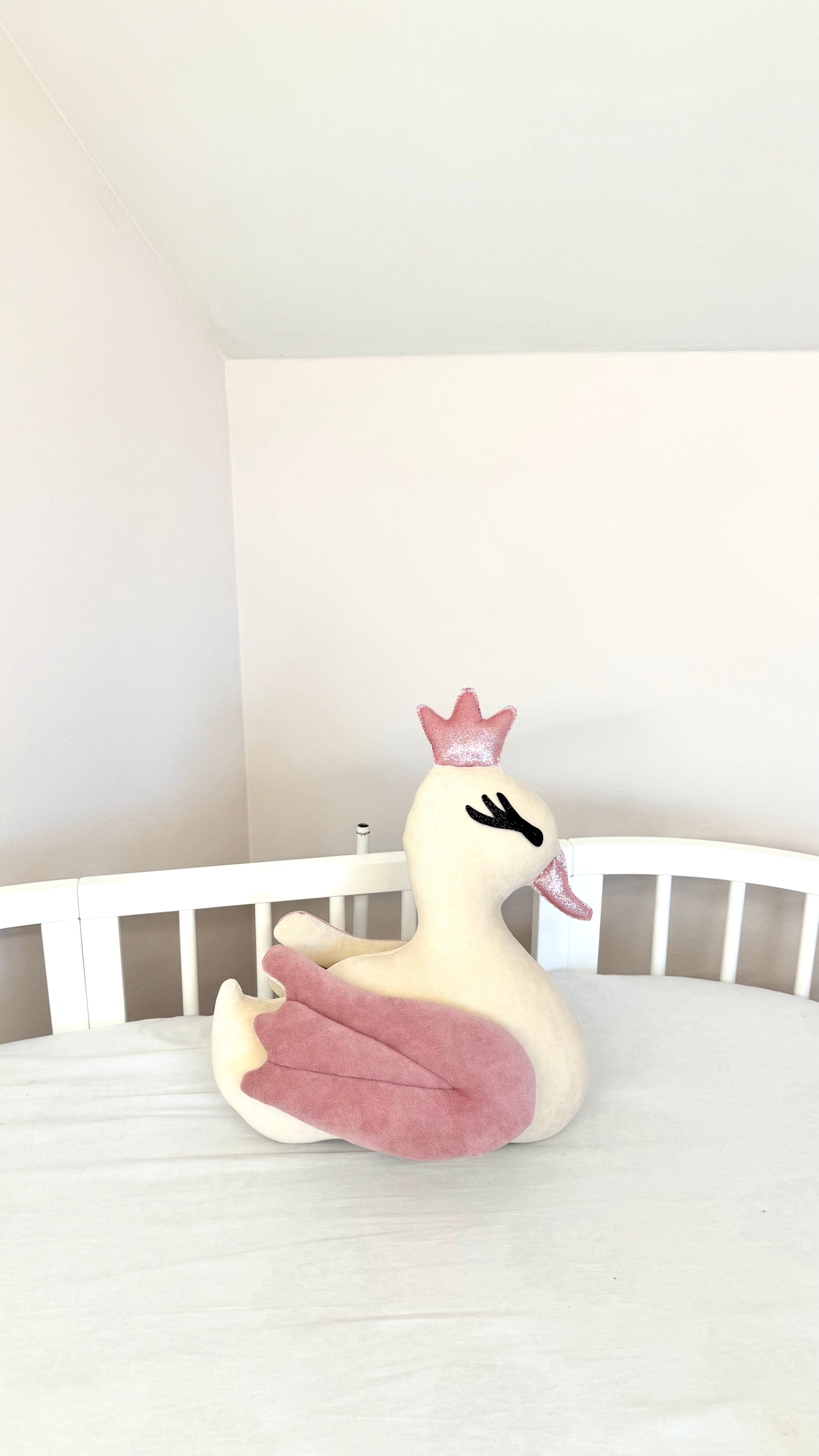 Lebădă regală. Corp bej deschis. Aripi roz prăfuit.