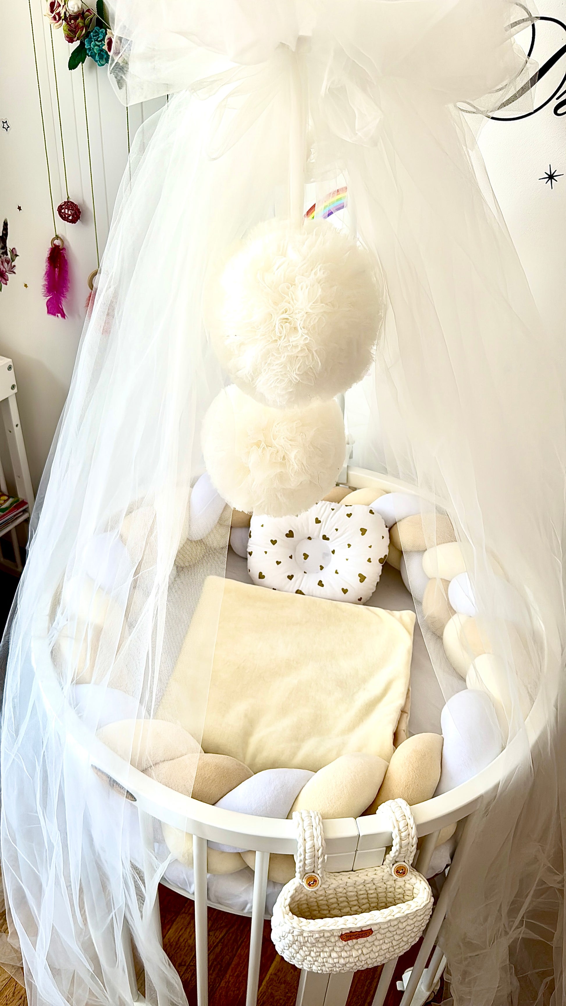 Set de 6 accesorii în nuanțe de alb, bej și crem pentru pătuțul bebelușului
