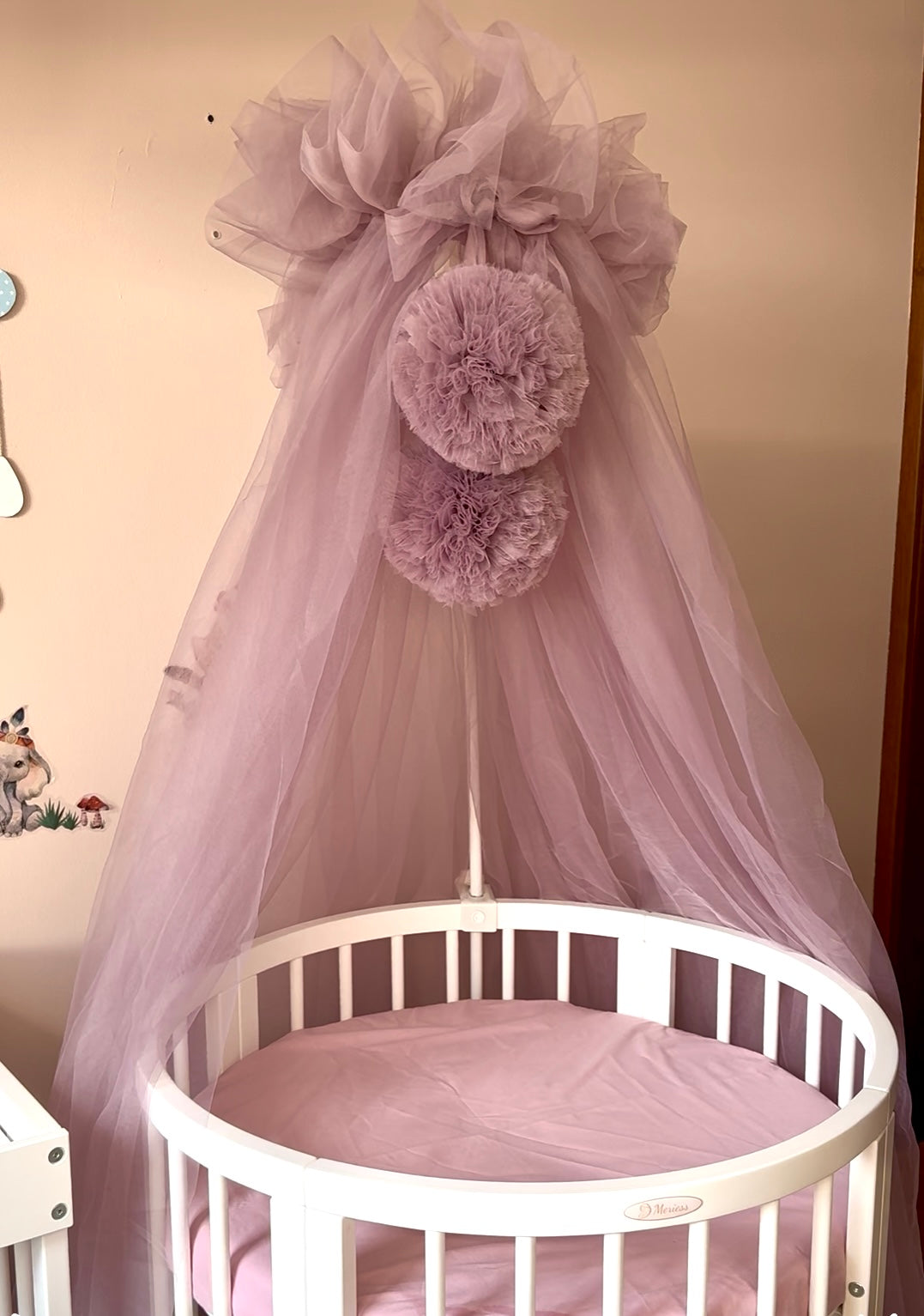 Baldachin fin cu două pompoane și lungimea de 10 m, roz plămâniu