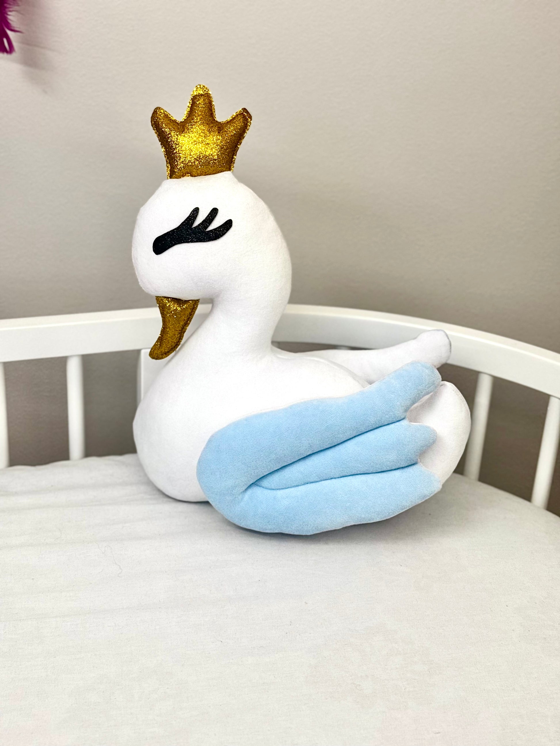 Lebădă decorativă din velur moale cu umplutură hipoalergenică – decor pentru camera copilului. Albastru deschis