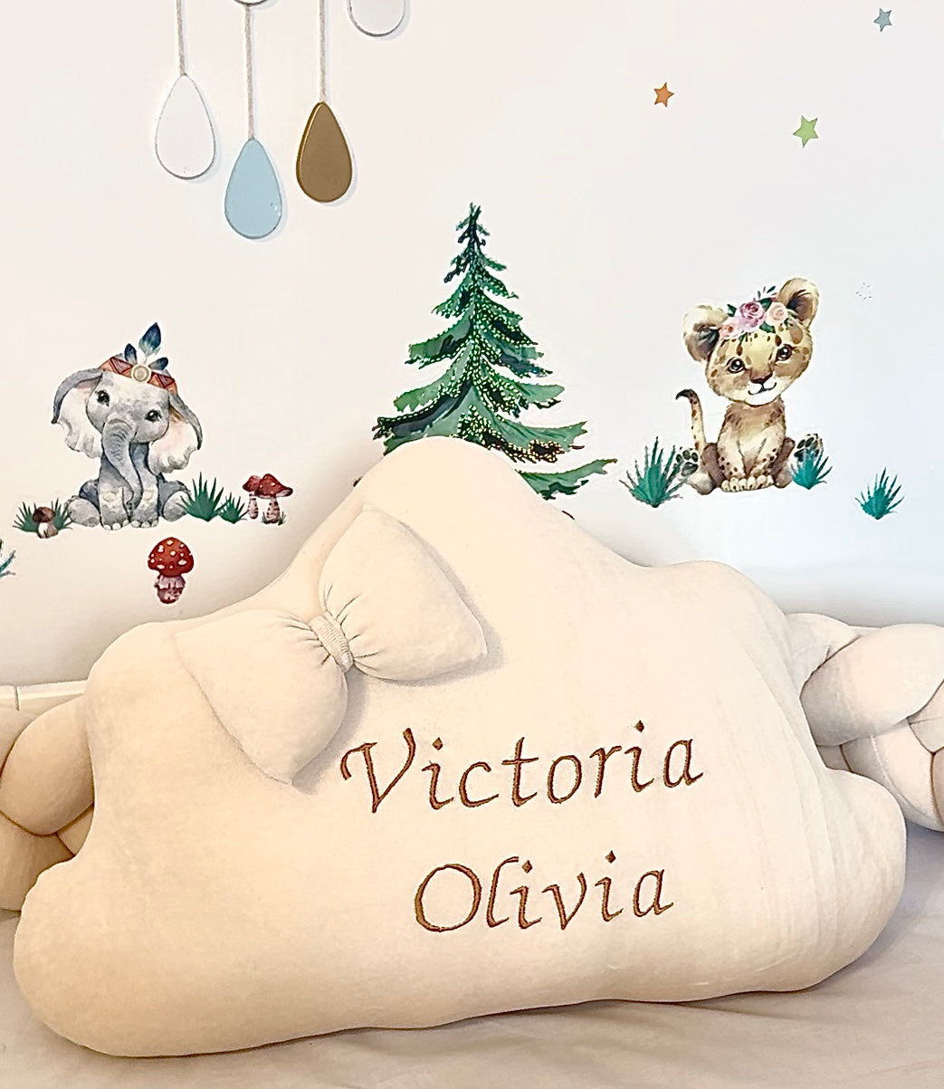 Pernuță nor personalizată cu nume și fundiță BEJ